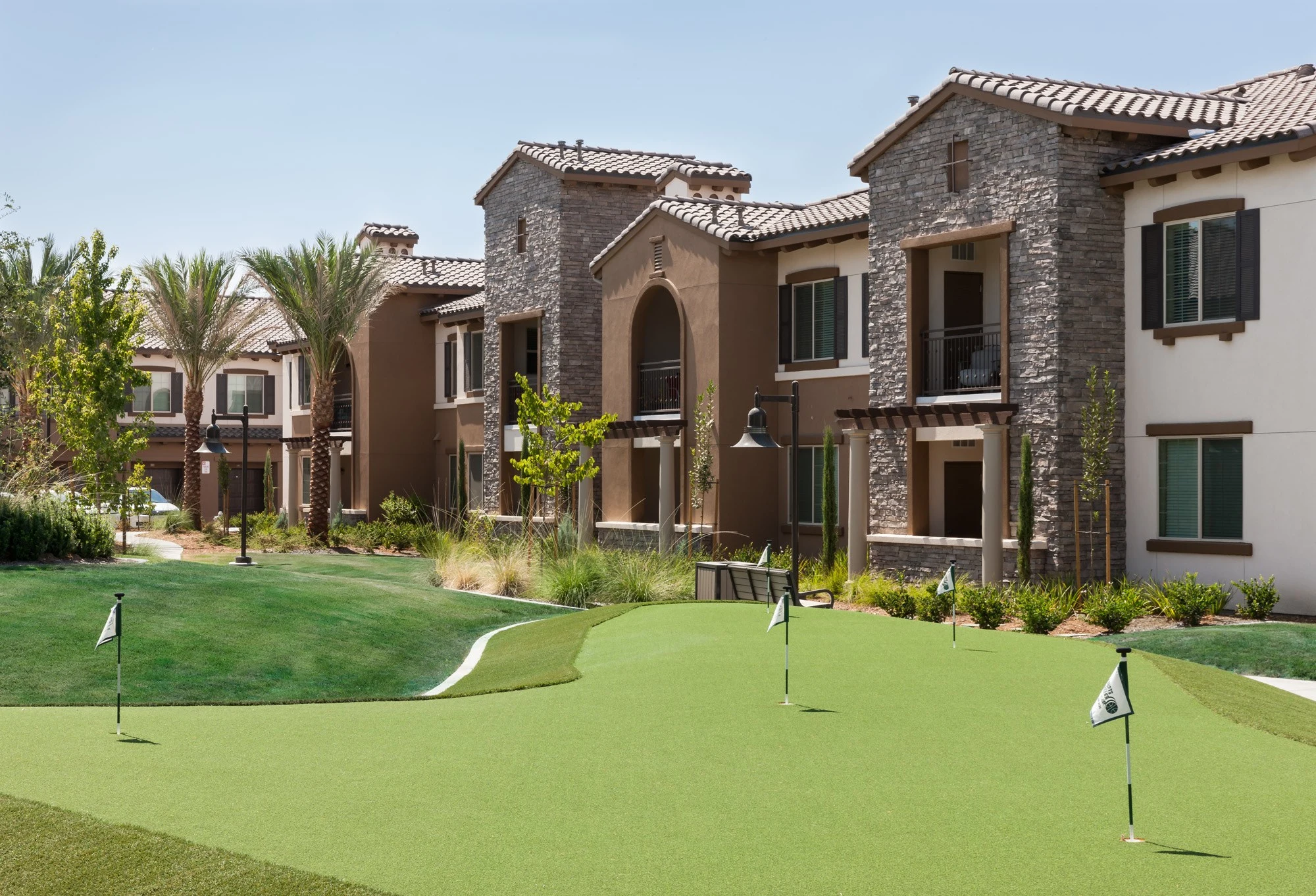 The Retreat at Riverlakes is a luxurious resort-style apartment home community in Northwest Bakersfield, California. Enjoy the convenience of being close to everything with easy access to local freeways, shopping, dining, and entertainment. If convenience and location are important factors in your lifestyle, you’ve come to the right place. Choose from six exceptional floor plans featuring one, two, and three-bedroom options. You will love creating gourmet meals in our open-concept kitchens that include islands, custom cabinetry with granite countertops, and Energy Star appliance packages. Our apartment homes also feature in-home washers and dryers, wood-style plank flooring and designer carpeting. The unparalleled quality doesn’t end when you walk out your front door. With resort-style community amenities including a resident lounge with a gourmet kitchen, outdoor fireplace retreat, and BBQ terrace, you will feel like you’re on vacation all the time. Take a cool refreshing dip in our shimmering swimming pool or just relax in the spa. We also invite you to come and visit the putting green or work out in our fitness center. Give us a call today and see why you want The Retreat at Riverlakes to be your new home.